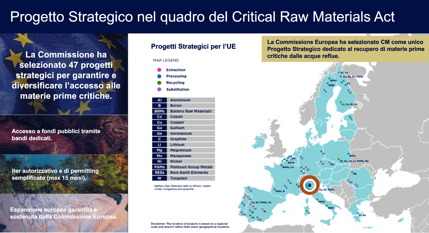 Circular Materials è orgogliosa di rappresentare RECOVER-IT, uno dei 47 progetti selezionati a marzo 2025 dalla Commissione Europea, di cui solo 4 in Italia. RECOVER-IT è l’unico Progetto Strategico focalizzato sul recupero dalle acque reflue, e si posiziona all’avanguardia degli sforzi europei nella costruzione di resilienza, autonomia e sostenibilità nella filiera delle materie prime critiche.